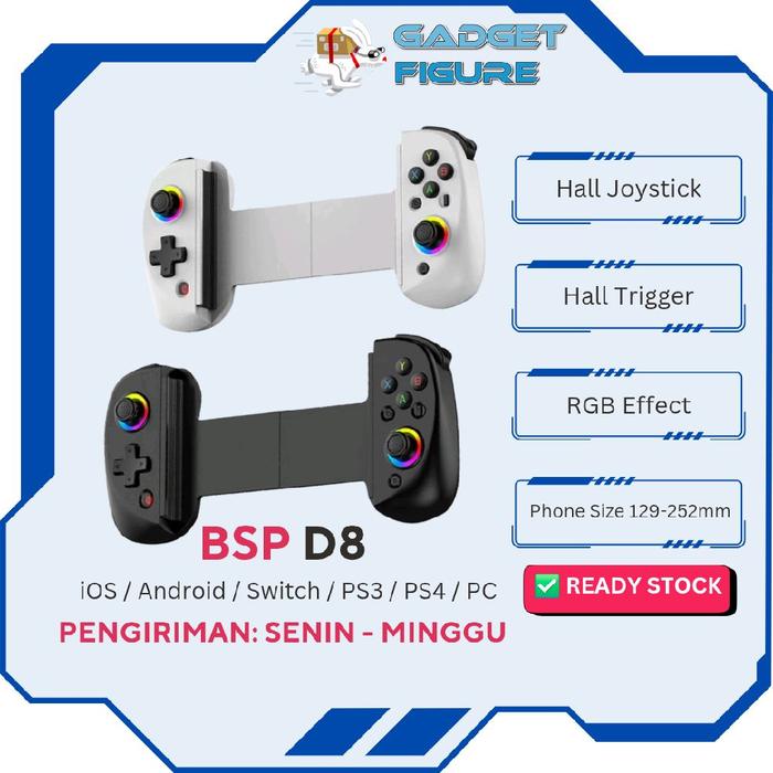 BSP Gamepad D8 Wireless Bluetooth Controller Teleskopik untuk Android iOS PC dengan Joystick Hall