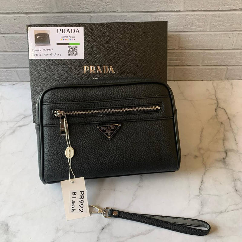 TAS TANGAN PRIA WANITA HANDBAG PRADA KULIT PLUS BOX ORIGINAL
