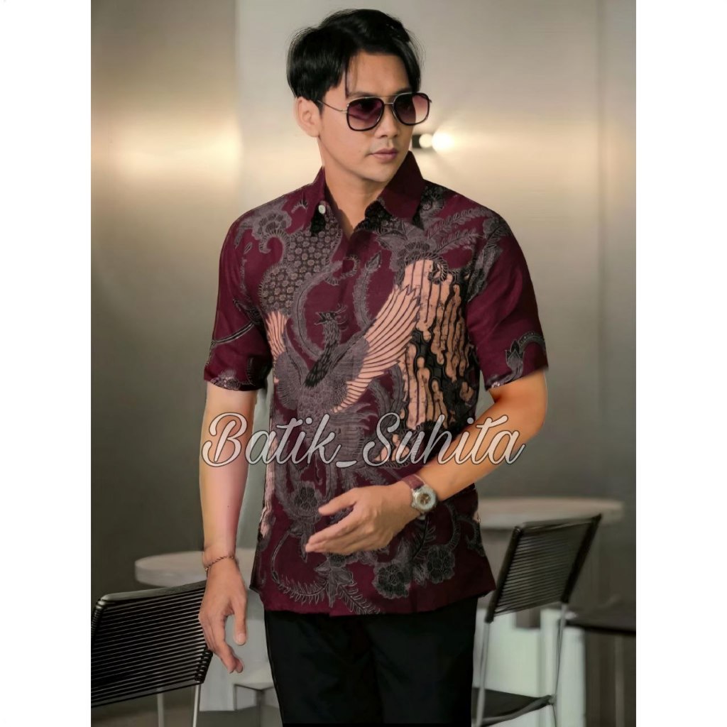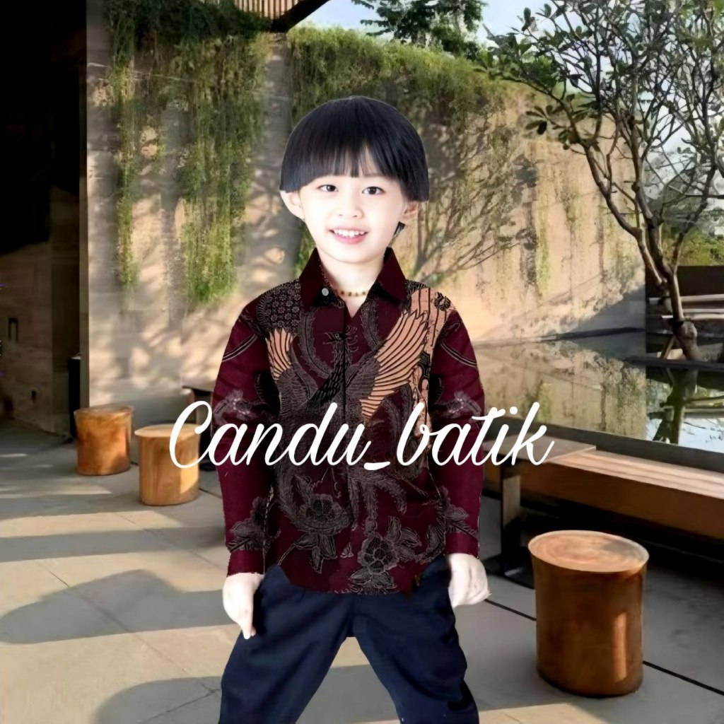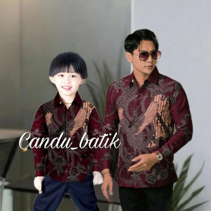 Terbaru Couple Batik Ayah Dan Anak Laki-Laki Warna Burgundy Kemeja Batik Pria Dewasa Dan Anak Umur 1-12Tahun