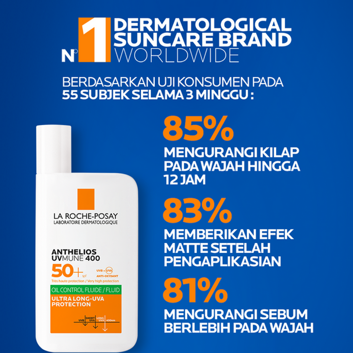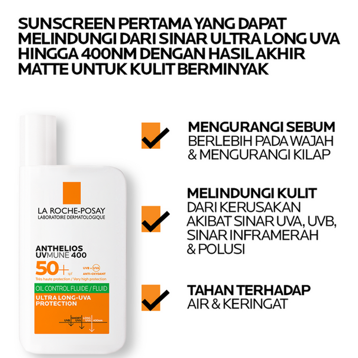 La Roche Posay Anthelios UVMune 400 Oil Control Fluid SPF50+ PA++++ 50ml - Sunscreen Kulit Jerawat/ Berminyak/SKINCARE