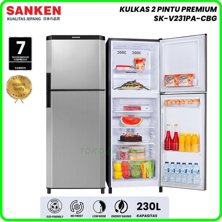 KULKAS SANKEN 2 PINTU Kapasitas 230 Liter - 260 Liter TEMPERED GLASS (GARANS RESMI 7 TH)
