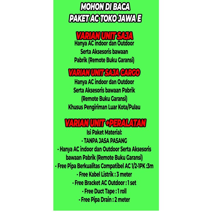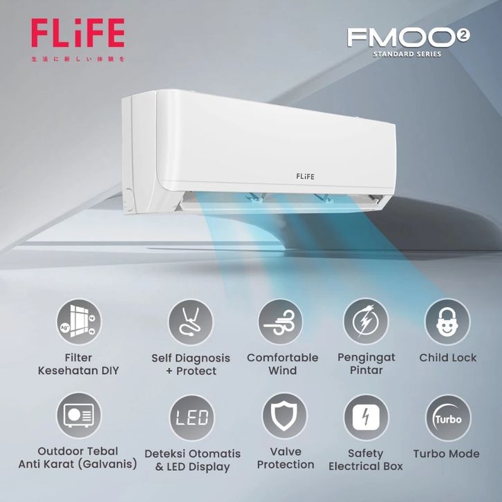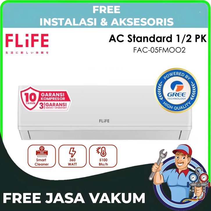 AC FLIFE 1/2 PK STANDART + P.ANGAN FAC-05FMOO2 TURBO .E - SMART CLEANER - GARANSI RESMI