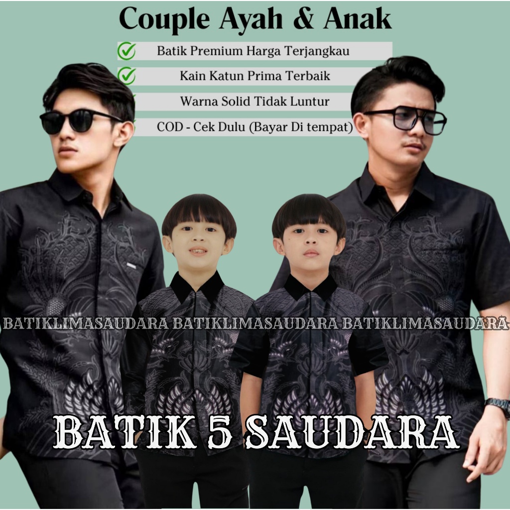 Terbaru Couple Batik Ayah dan Anak Laki Laki Kemeja Batik Pria Dewasa dan Anak Laki Laki Modern Terbaru BATIK Pusoko Hitam
