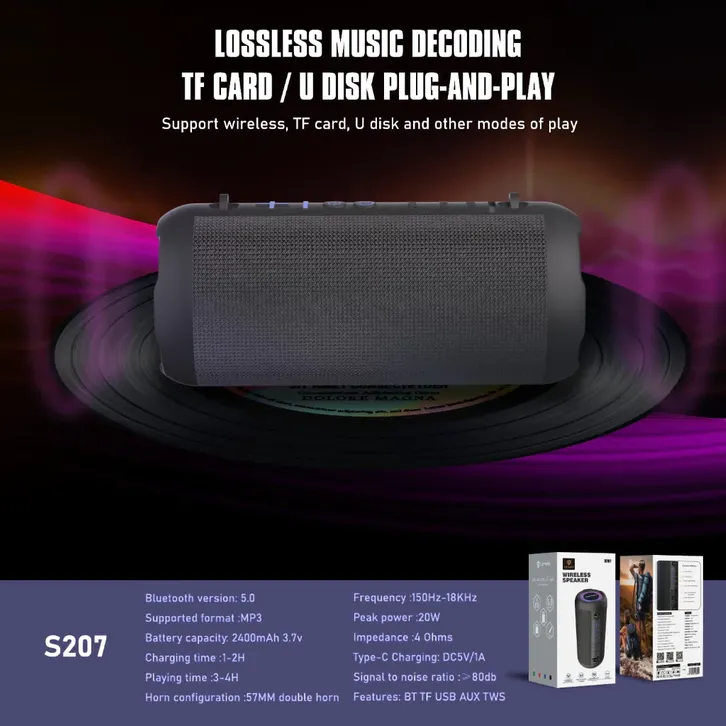 Speaker Wireless LENYES S207 LED Colorfull Lights Bluetooth 5.0 Portable Hifi Sound Quality TWS Original Official Store