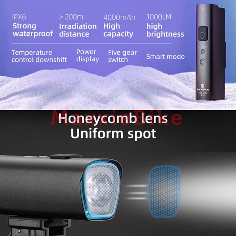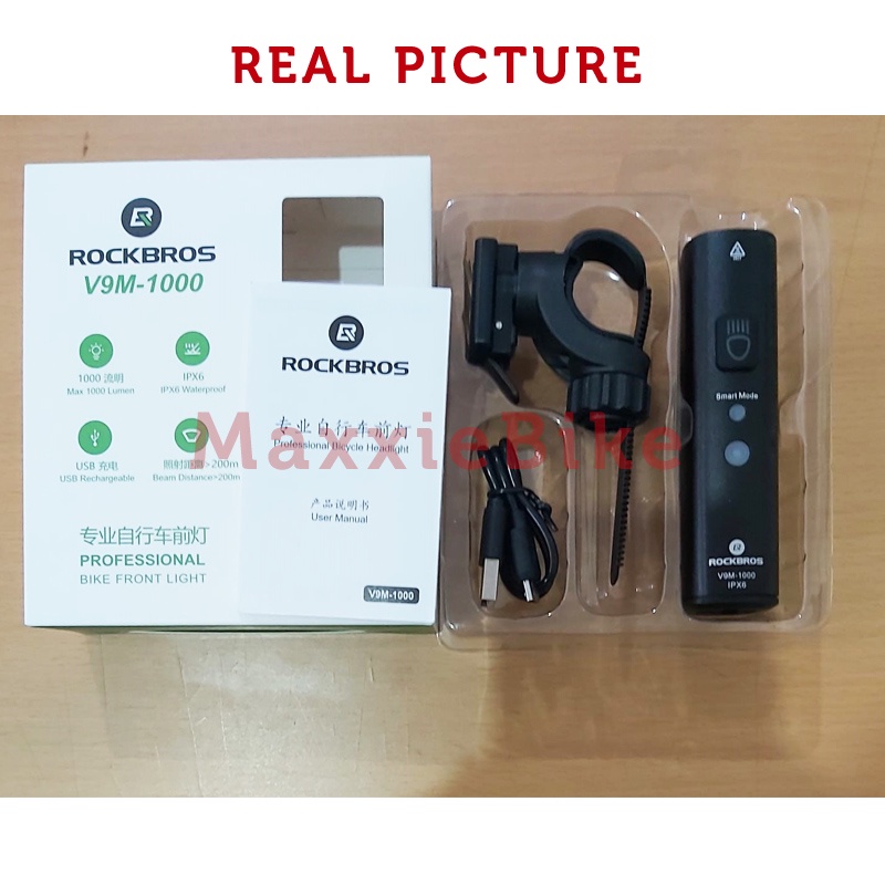 ROCKBROS V9M-1000 Lampu Senter Depan Sepeda 1000L 1000Lumen Bike Front Light 4000mAh IPX6 Waterproof