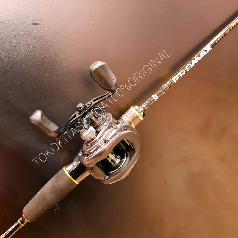 PAKET REEL PANCING BAITCASTING ABU GARCIA PROMAX 4-L JDM SATU SET HANDLE KIRI TERMURAH FREE PE LINE TERLARIS