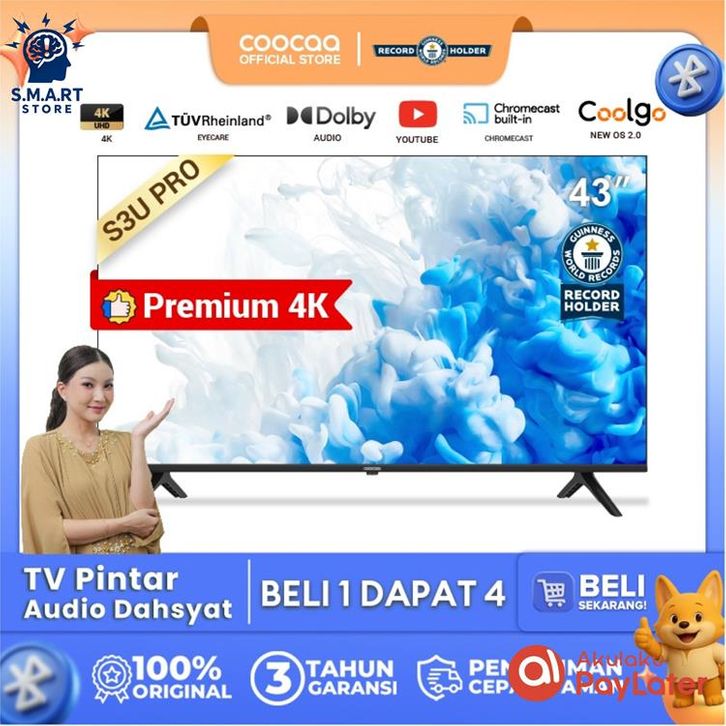 COOCAA 43 inch Smart TV - Digital TV - 4K - UHD - Dolby Audio - Youtube - Mirroring - Boundless -Browser - WIFI - HD