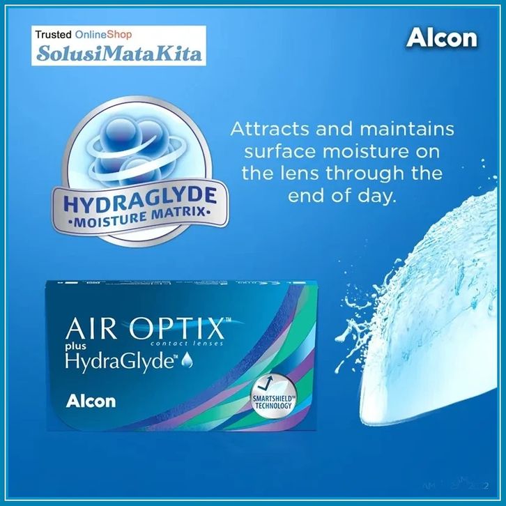 ALCON AIR OPTIX plus HydraGlyde Softlens | Bulanan | 3 pcs/box | -0.25 s/d -10.00 | Promo Terbatas