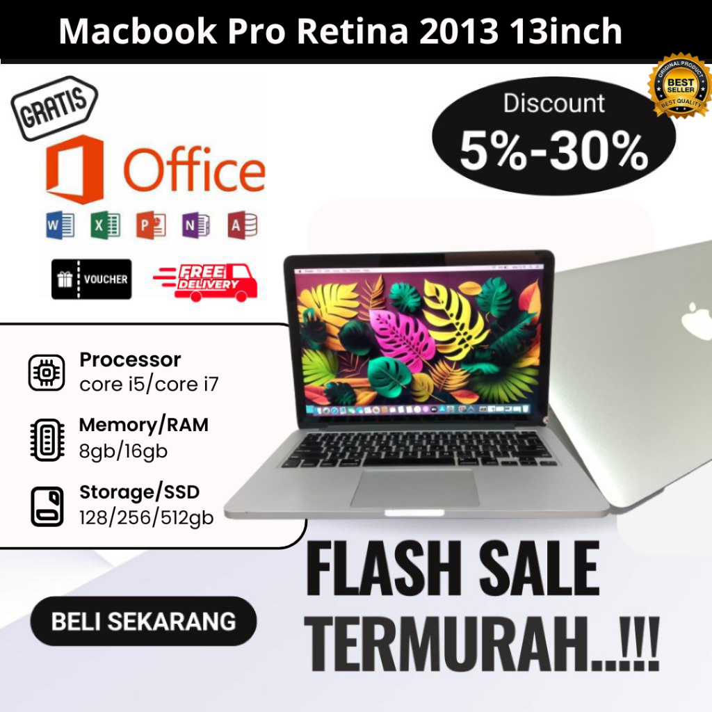 [ORI PROMO] MACBOOK PRO RETINA 13INCH 2013 CORE I5/I7 RAM 4GB/8GB/16GB SSD 128/256/512