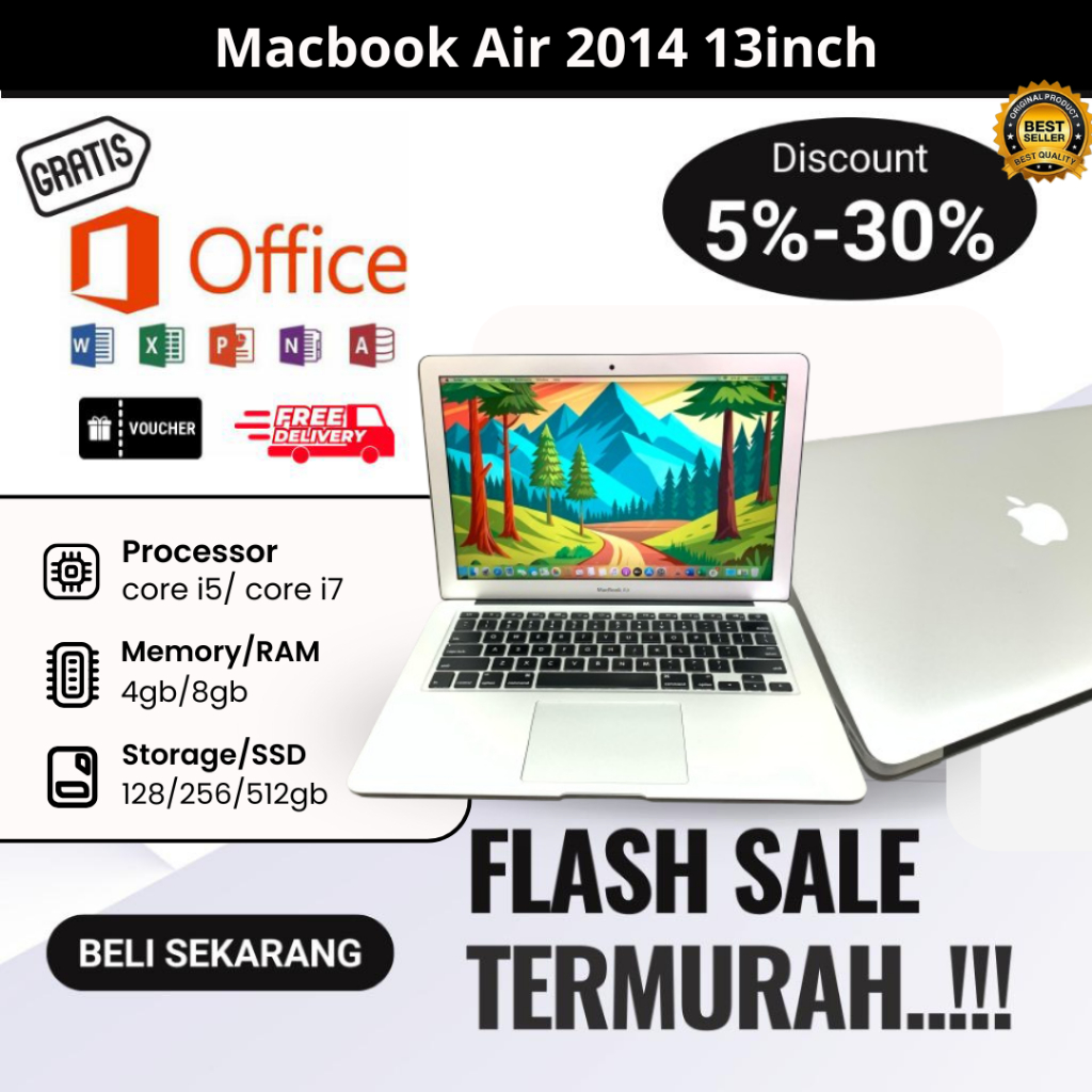 MACBOOK AIR 13INC 2014 CORE I5/I7. RAM 4GB/8GB SSD 512GB. NO MINUS
