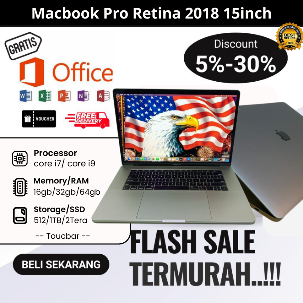 [PROMO] MACBOOK PRO 15INCH 2018 CORE I9/I7 || RAM 32GB/16GB SSD 512GB. TOUCHBAR & 2VGA