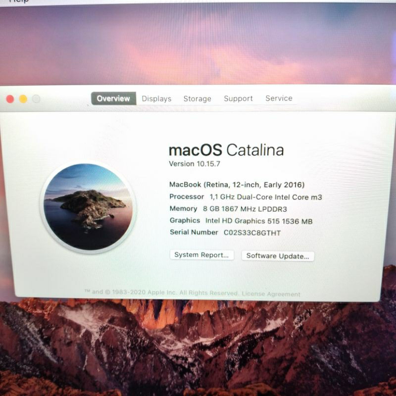MACBOOK AIR RETINA 12 INCI 2016 CORE M3 . 8GB/256GB
