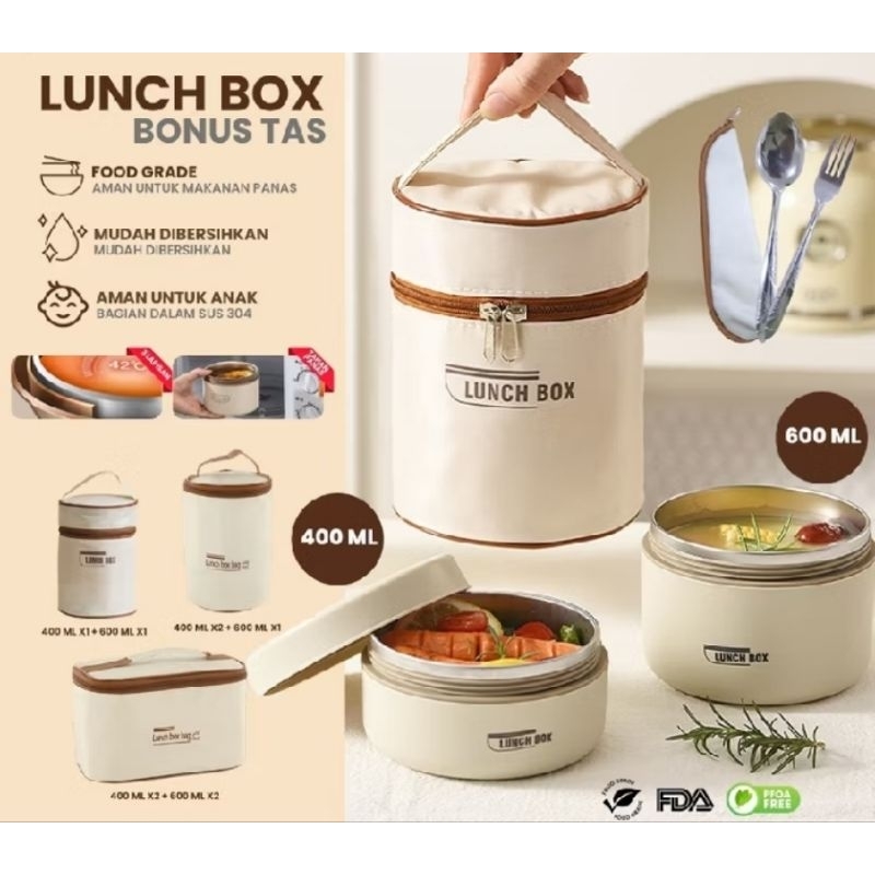 TEMPAT MAKAN LUNCH BOX 1 SET SUS 304 STAINLESS STEEL/LUNCH BOX BENTO TAHAN PANAS TAHAN BOCOR
