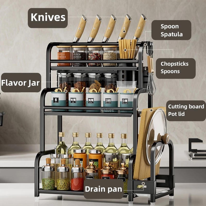 Rak Bumbu Dapur Rak Meja Makan Serbaa Stainless Steel Rak Bumbu Dapur Stainless Steel Rak Penyimpanan Dapur Rak Bumbu