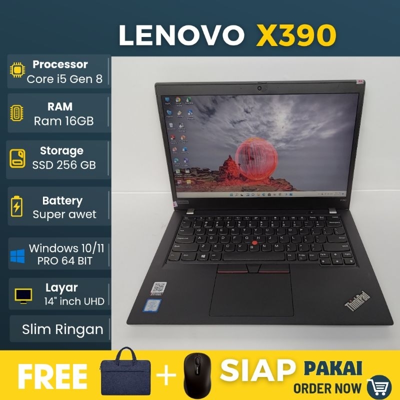 LAPTOP LENOVO X390 INTEL CORE I5 GEN 8 RAM 16GB SSD 256GB WINDOWS 11 - SIAP PAKAI