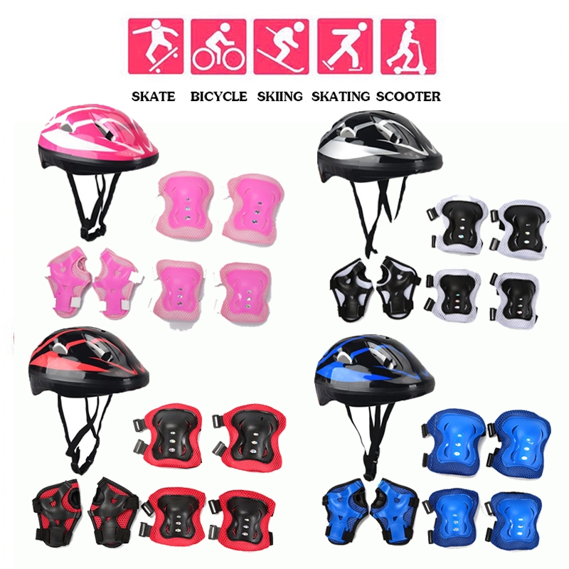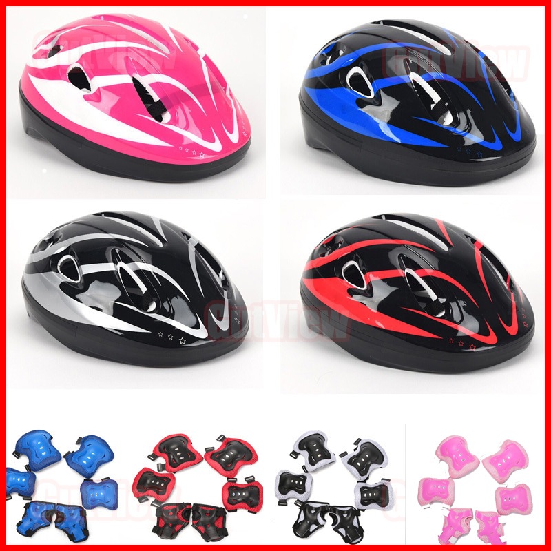 Helm Anak + Pelindung Lutut Siku Tangan, Set Perlengkapan Safety Sepatu Roda/Skuter/Sepeda, Cocok Usia 3-12 Tahun