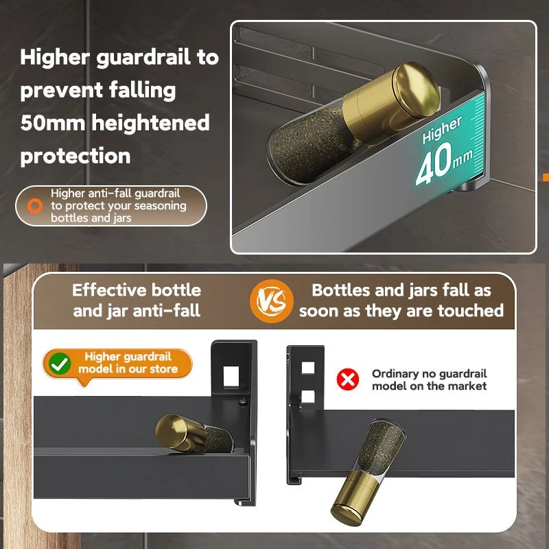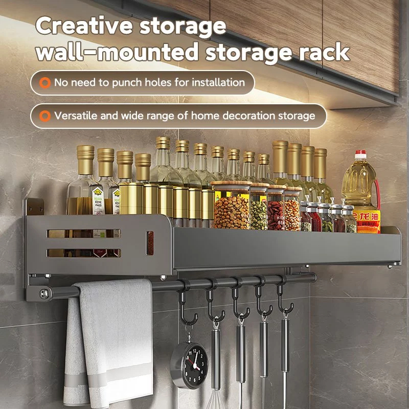 Rak bumbu yang dipasang di dinding dapur multifungsi tanpa lubang meninju bahan baja tahan karat rak bumbu dapur estetik