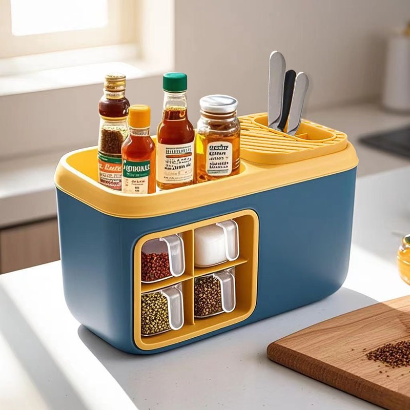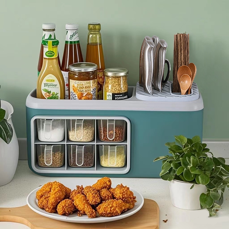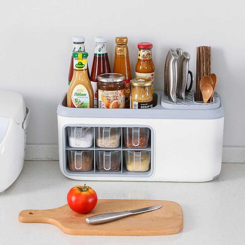 Rak Penyimpanan Bumbu Dapur dengan 6 Laci Sendok Tempat Pisau Kitchen Pencocokan multi-warna