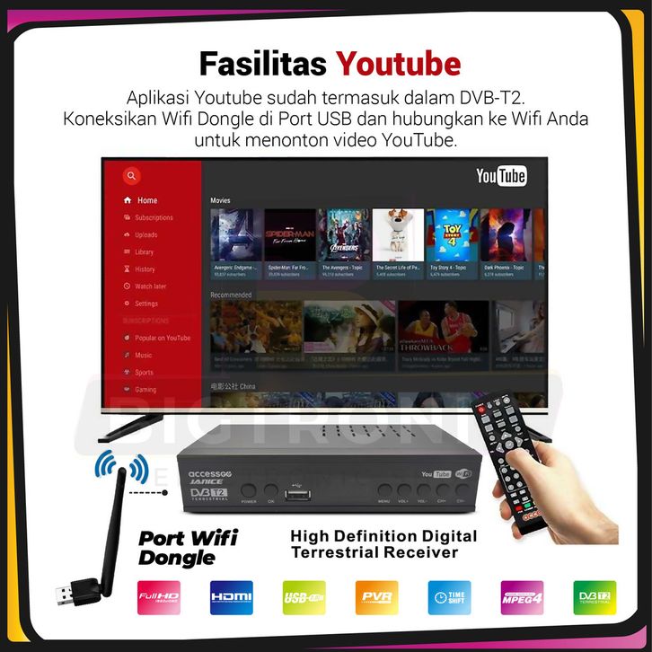 Accessgo STB Set Top Box Janice DVB-T2 Penerima Siaran TV Digital Bisa Youtube ORIGINAL BERGARANSI