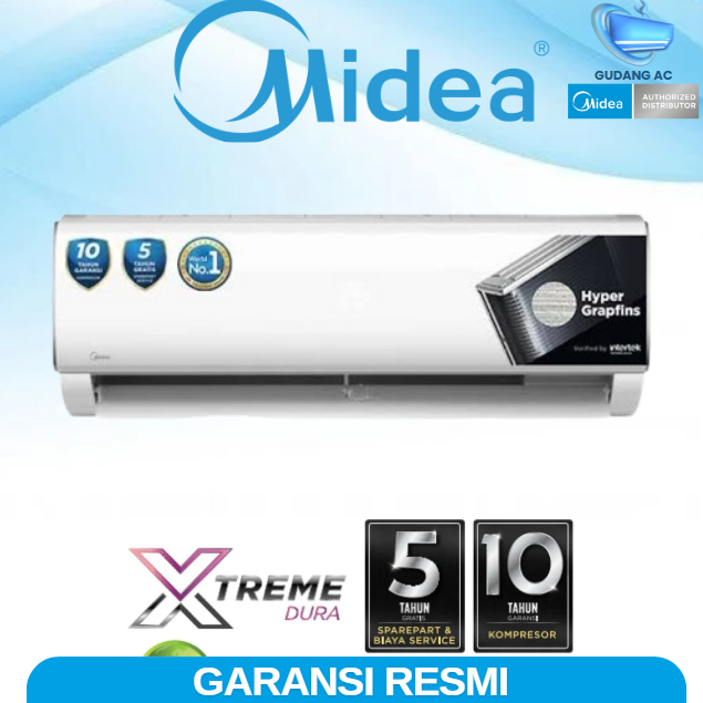 AC Midea 1/2 PK Split R32 MSAFE-05CRN2X Xtreme Dura Black Fin Hyper Grapfins Extreme