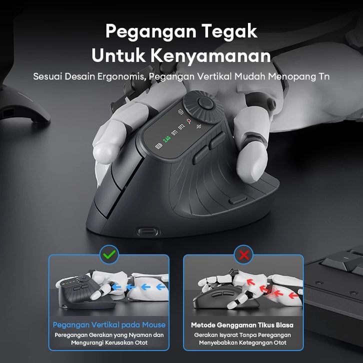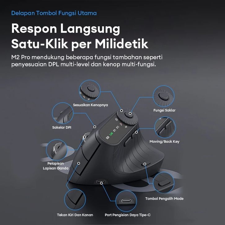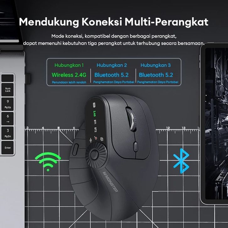 Mouse Wireless Monster M2 Pro 2.4G Bluetooth Gaming Vertical Ergonomic Dual Mode Four Dpi Switch 500mAh Large Battery