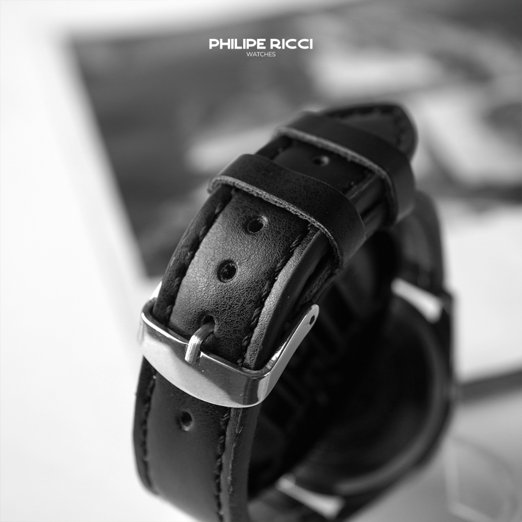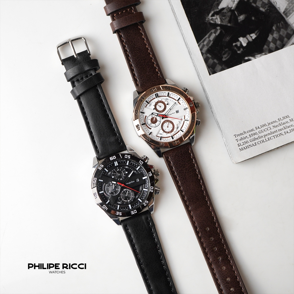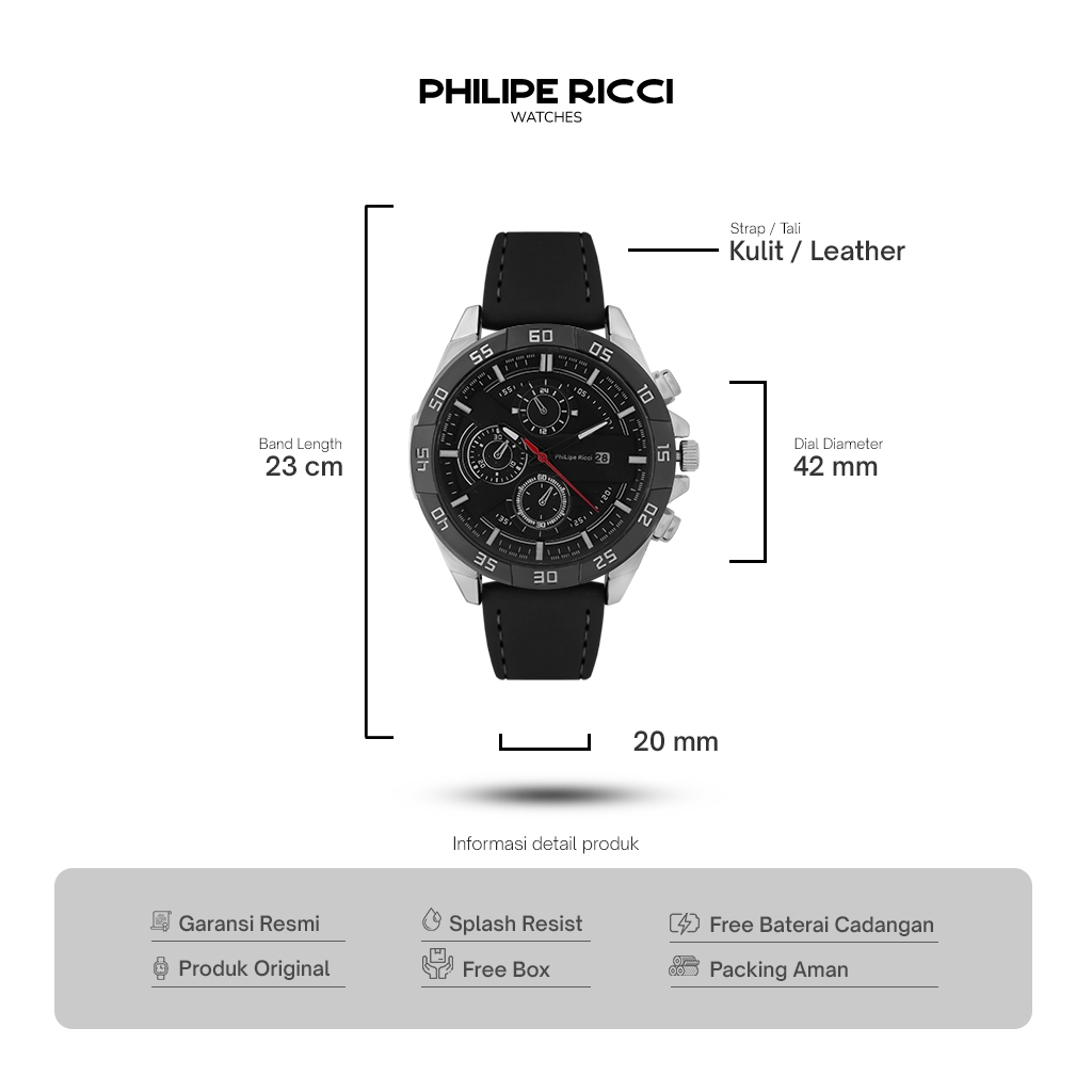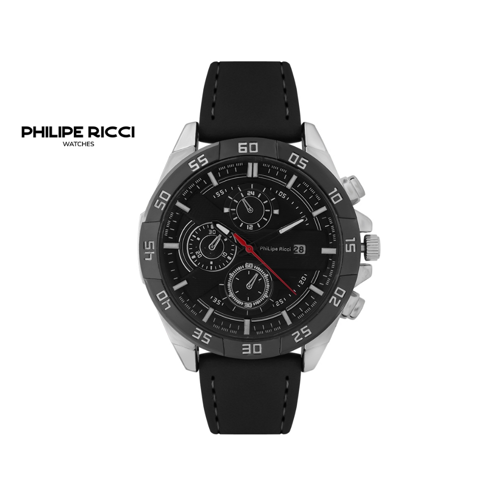 PHILIPE RICCI JAM TANGAN PRIA KULIT ANALOG HITAM TERBARU 100 PERSEN ORIGINAL KEREN TRENDY 7552 FREE BOX