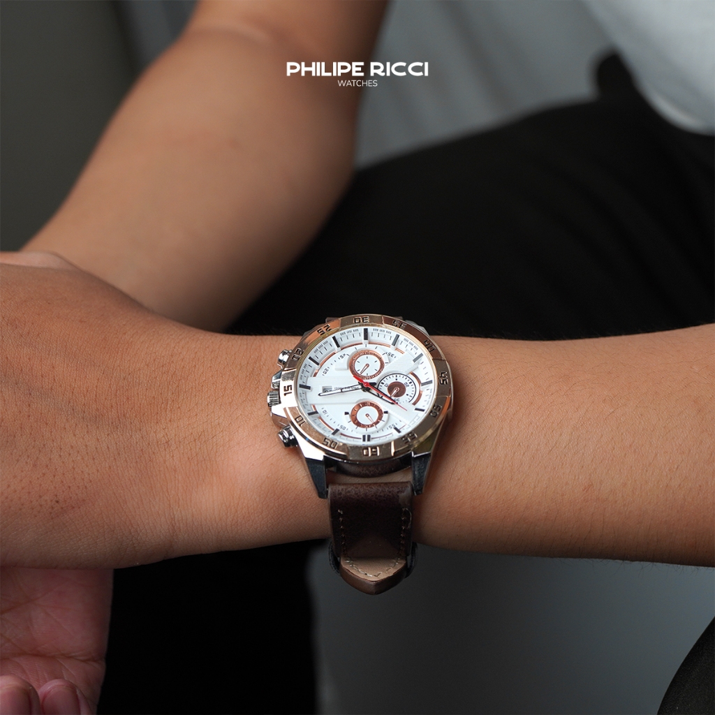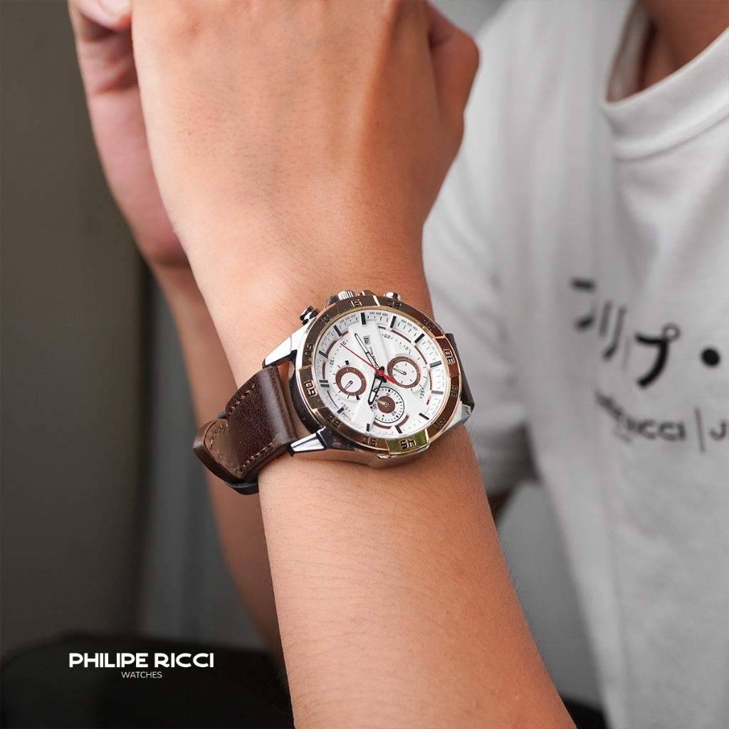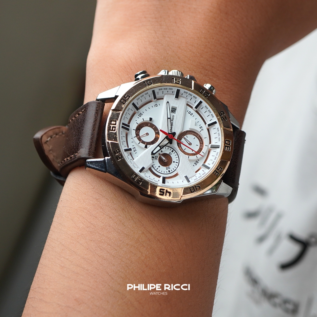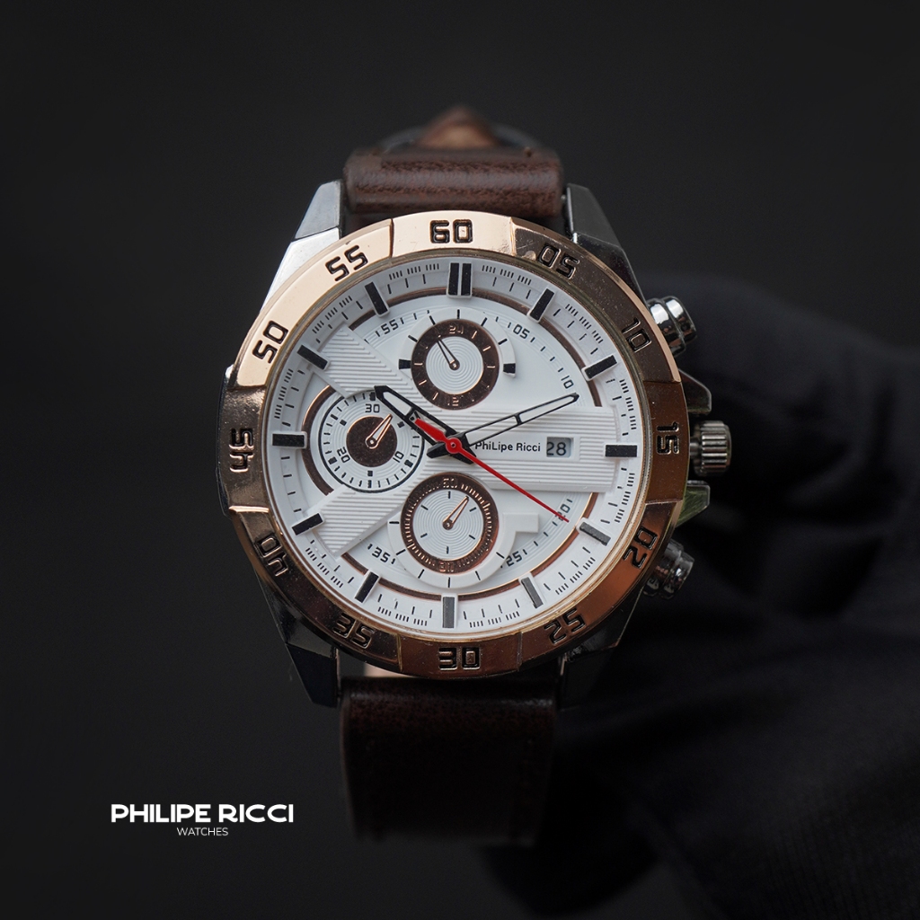 PHILIPE RICCI JAM TANGAN PRIA KULIT ANALOG HITAM TERBARU 100 PERSEN ORIGINAL KEREN TRENDY 7552 FREE BOX