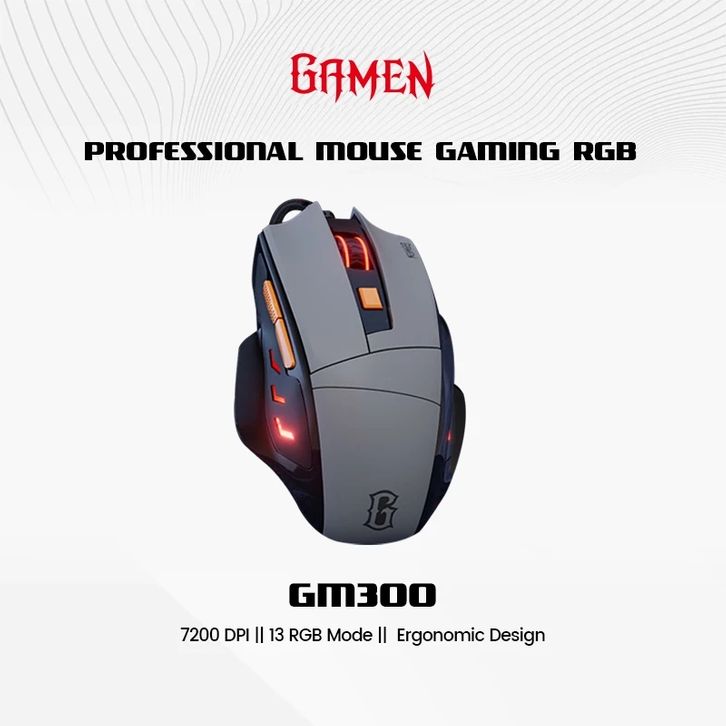 Gamen Mouse Gaming Kabel GM300 Original RGB 13 Mode 6 DPI Level Macro Button Sensor Presisi