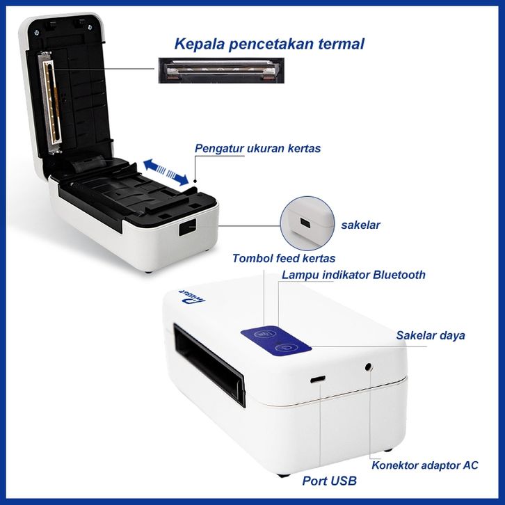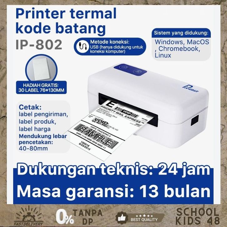Printer Bluethoot Thermal IP-802/QR-368BT(A70pro) Mein Cetak LabelStiker Resi USB+Bluetooth BestSeller SNI Printer Epson