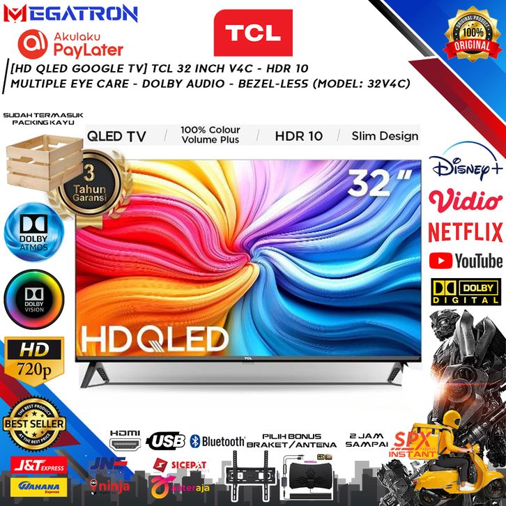 [HD QLED Google TV] TCL 32 inch V4C - 32V4C - HDR 10 - Multiple Eye Care - Dolby Audio - Bezel-less (Model: 32V4C)