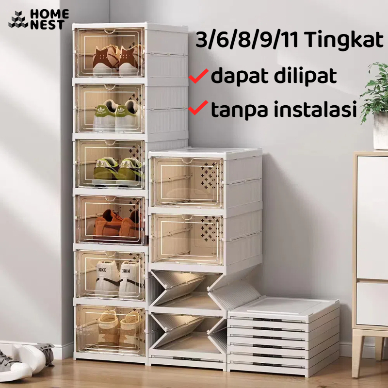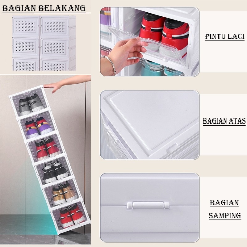 【TIDAK PERLU INSTALASI】RAK SEPATU SUSUN TERTUTUP , KOTAK SEPATU TRANSAPARAN TEMPAT SERBAGUNA