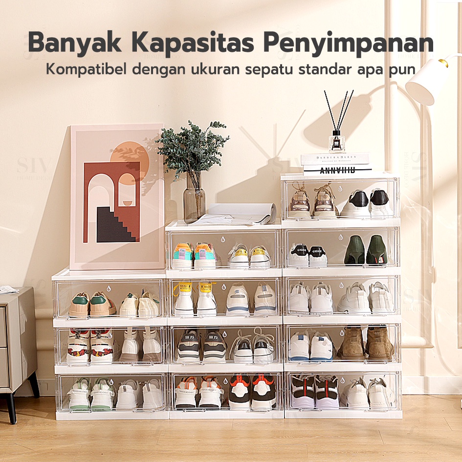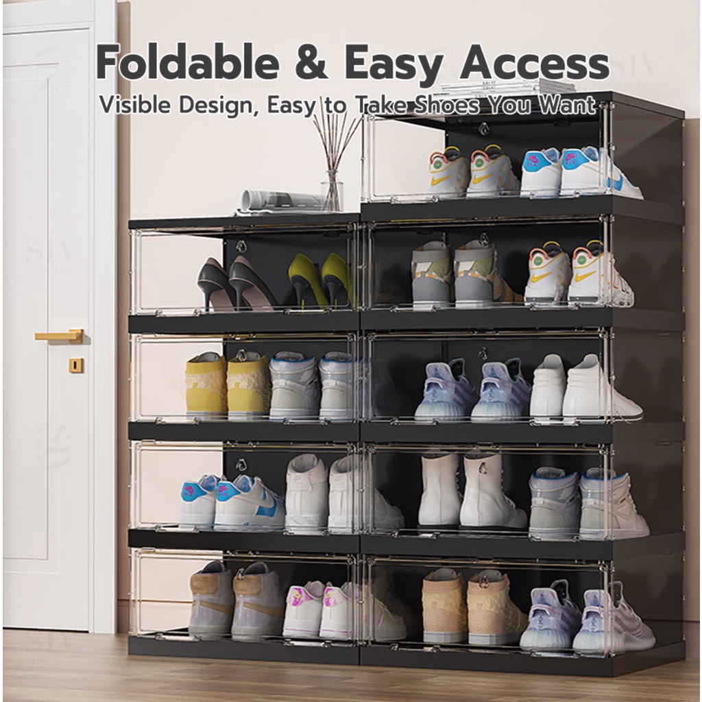【TIDAK DIPERLUKAN INSTALASI】SIV KOTAK SEPATU LIPAT RAK SEPATU LIPAT LEMARI SEPATU LIPAT KOTAK SEPATU TRANSPARAN PLASTIK