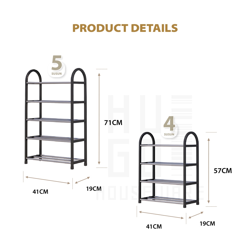 HUGO RAK SEPATU SANDAL 4 DAN 5 SUSUN TEMPAT SEPATU PORTABLE SERBAGUNA STAINLESS STEEL