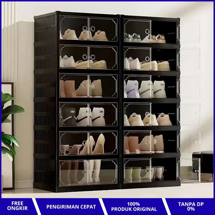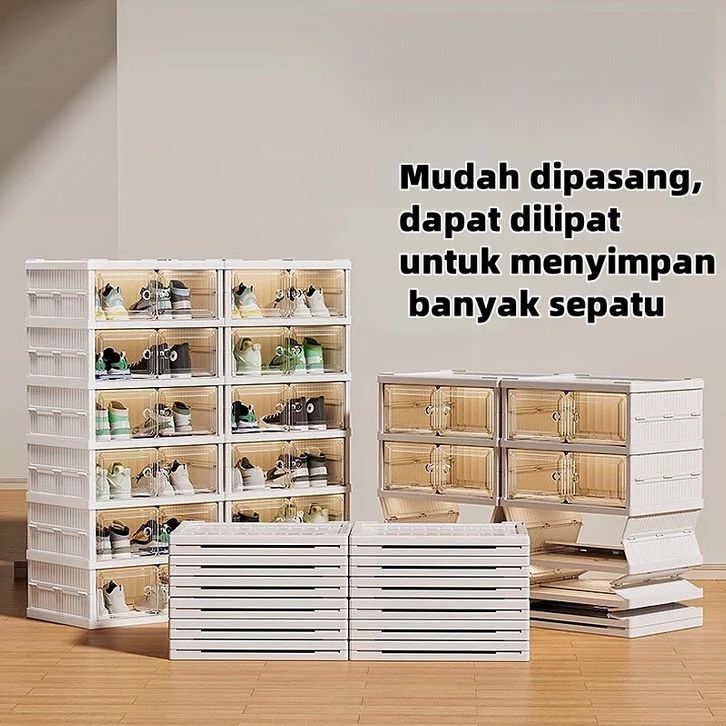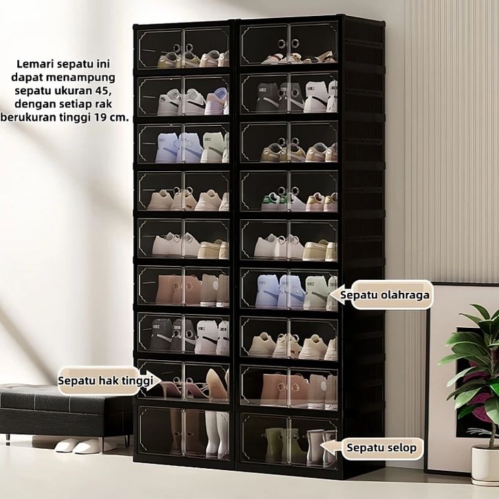 Rak Sepatu Tertutup Box Bebas Instalasi Lemari Sepatu Tertutup Lipat Serbaguna Pintu Magnet