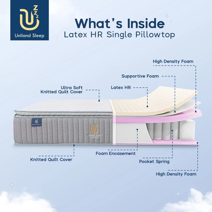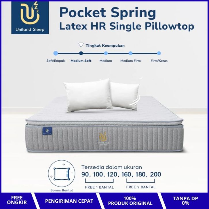 Kasur Busa Uniland Sleep Pocket Spring Latex HR Single Pillowtop 30cm Ukuran 200 x 200 King - Free Bantal