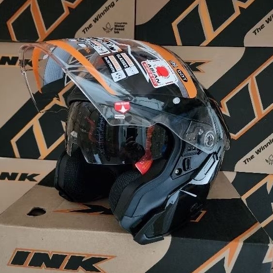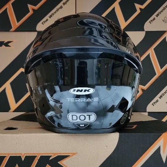 INK TERRA 2 BLACK ORIGINAL HELM HALF FACE HELMET SNI MURAH TERBAIK FULL PROTECT TERLARIS BEST SELLER DOUBLE VISOR