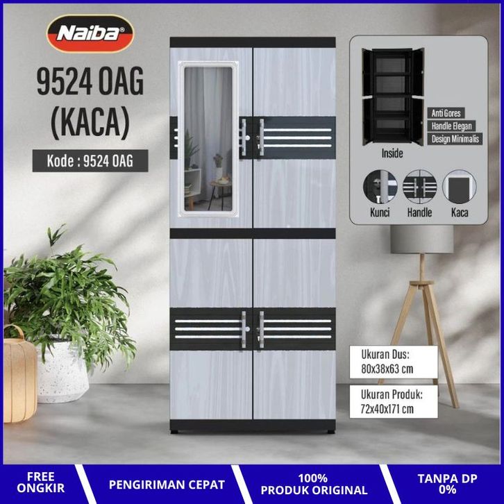 Lemari Plastik MSC Fit Ebony Kaca & Non Kaca Lemari Pakaian Baju 2 Pintu 4 Susun Serbaguna Premium
