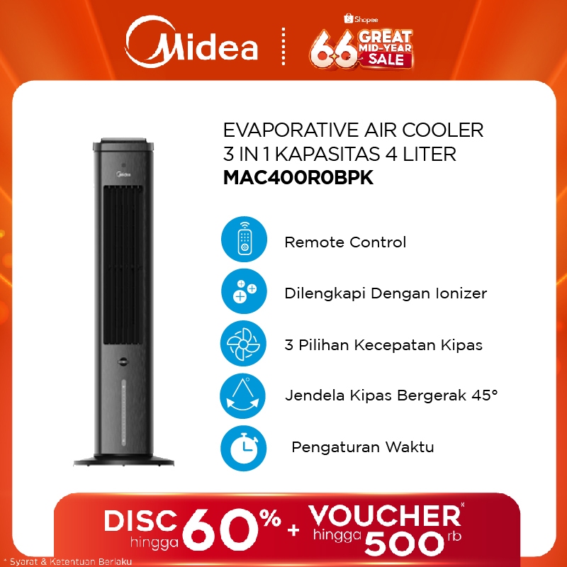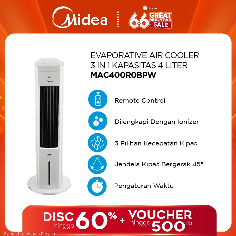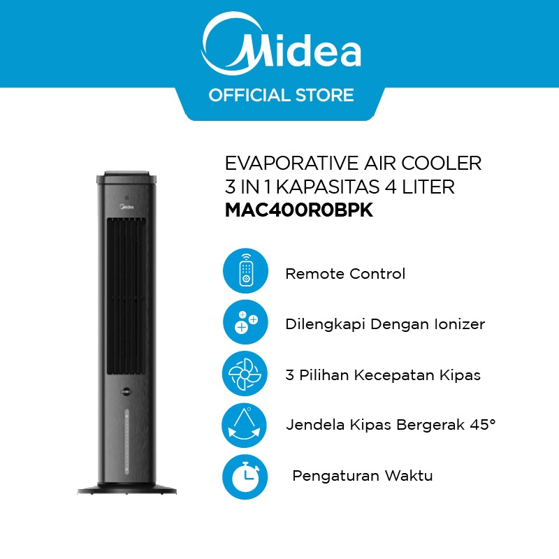 Midea 3-in-1 Evaporative Air Cooler - MAC400R0BPW (4L) - Remote and Ionizer Technology Gen 2