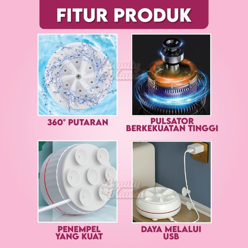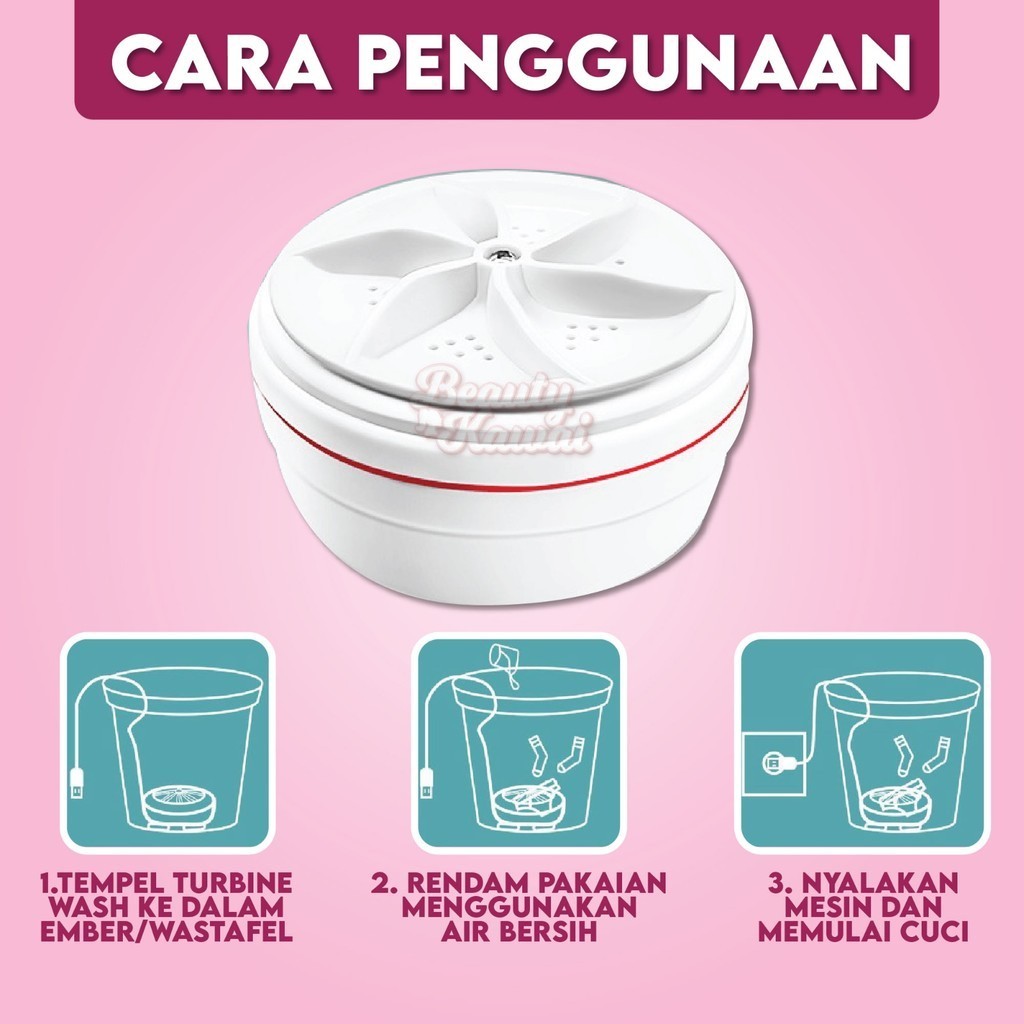 Mesin Cuci Portable Turbine Wash 360° Putar Pencuci Kaos Kaki Handuk Pakaian Dalam Mini Travel Laundry
