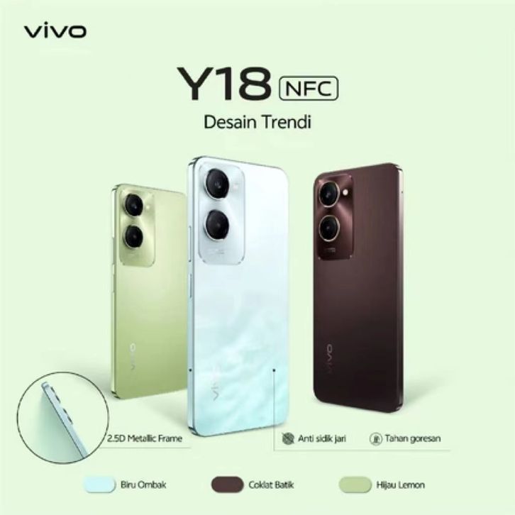 HP Y18 RAM6+128GB, Kamera AI 50MP, 5000 mAH+pengisian cepat 33W, garansi 12 bulan.