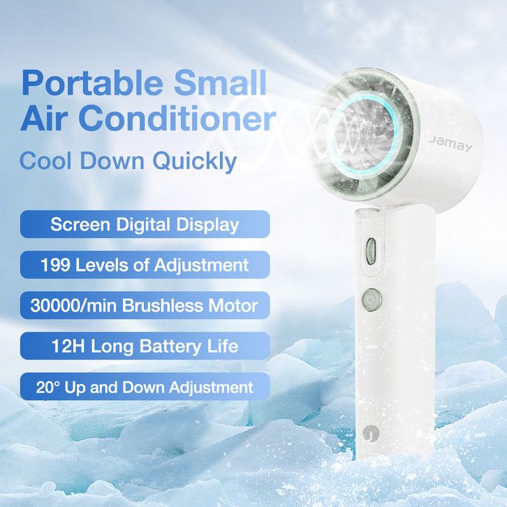 kipas angin portable Jamay Kipas Kecepatan Tinggi Portabel 6000mAh Semikonduktor Turbo Genggam Senter Fan Mini Senter K