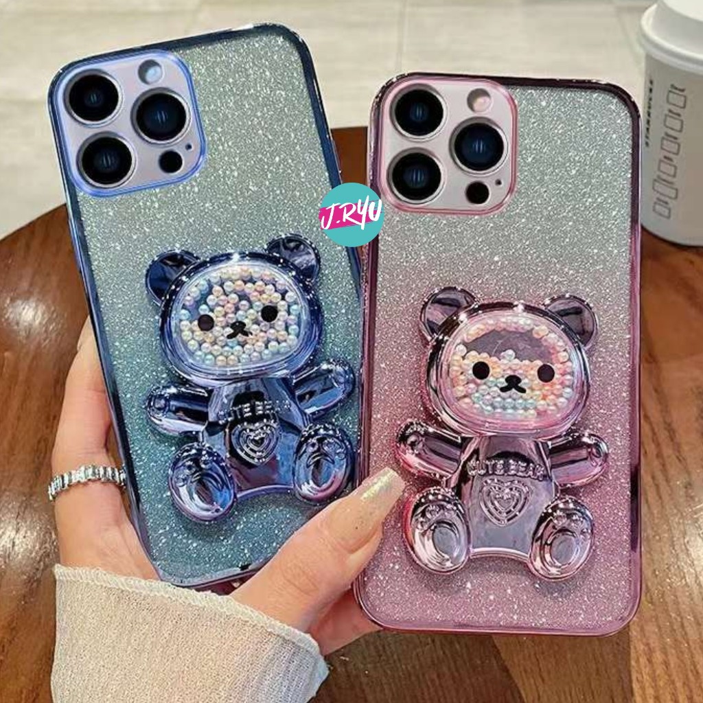 JRYU INFINIX Cute Bear With Stand Holder Softcase Compatible With INFINIX SMART 5 7 8 9 HOT 30 30i 30PLAY 9PLAY 10PLAY N