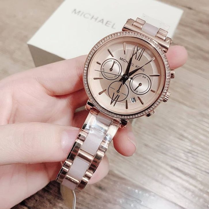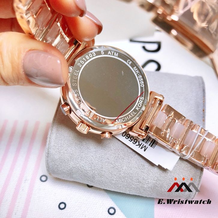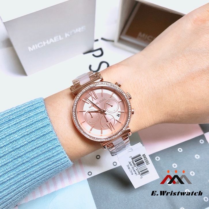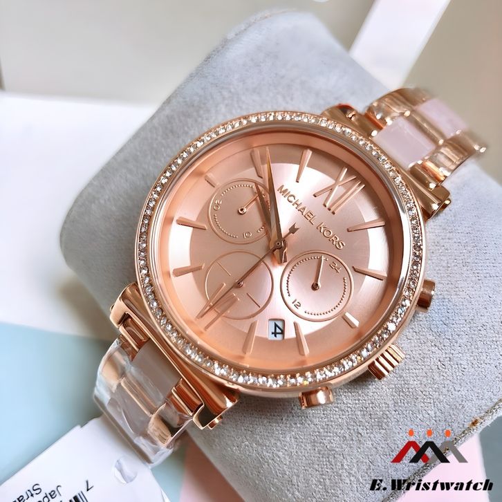 Jam Tangan Wanita MK 3882 & MK 6560 Sofie Chronograph Rose Gold Dial Dual Tone Stainless Steel Strap Original Bergaransi