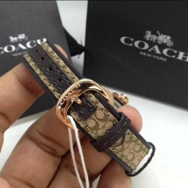 Jam Tangan Wanita Coach Original White Rosegold Strap Leather Garansi .