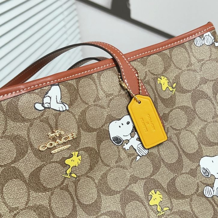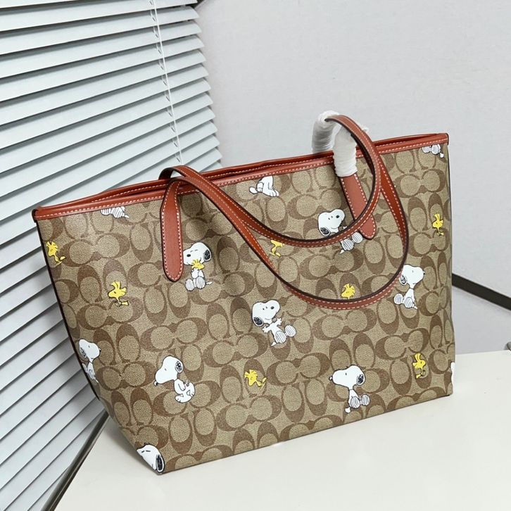 Tas Wanita Shoulder Bag Peanuts City Tote In Signature Canvas With Snoopy Woodstock Print CF166