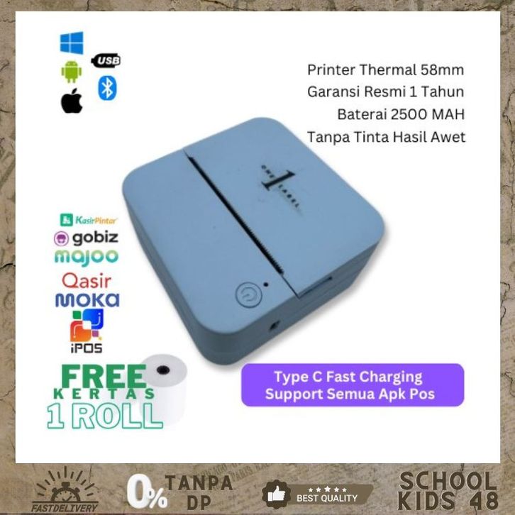 Printer Bluetooth Thermal Resi Mini 58MM Portbale THERMAL BATERAI KASIR Pocket Mini Kertas Printer Epson