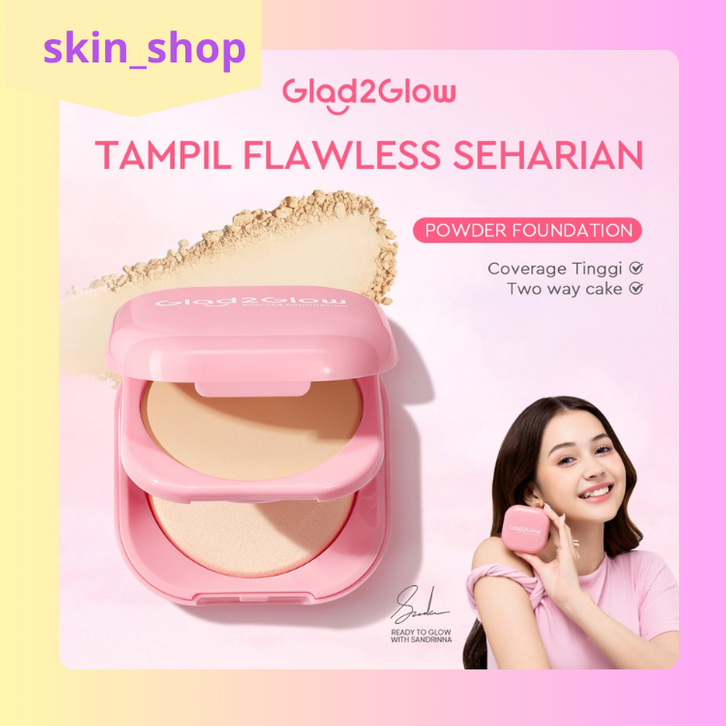 [Mall] Glad2Glow Perfect Blurring Powder Foundation Setting Two Way Cake TWC Mengandung Squalane Dan Vitamin E Concealer