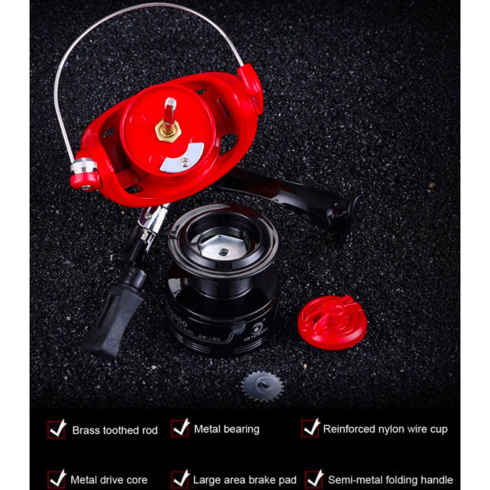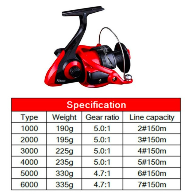REEL PANCING SPINNING RED BLACK UKURAN LENGKAP 1000-6000 MAX DRAG 6 KG RATIO 5.0:1