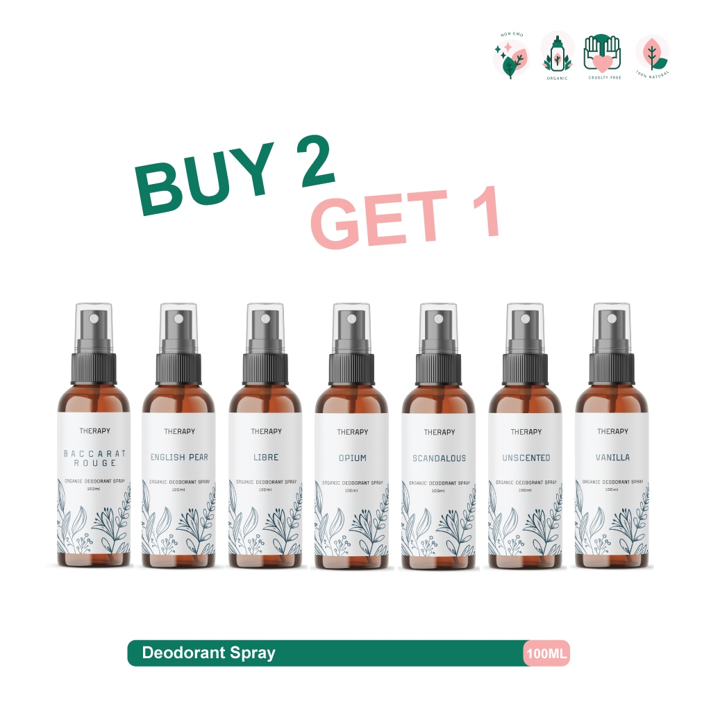 THERAPY NATURAL DEODORANT SPRAY - NATURAL DEODORANT SPRAY TAWAS CAIR - PENGHILANG BAU BADAN ALAMI - DEODORANT SPRAY TAWAS PRIA WANITA TAHAN LAMA 100ML & 60ML