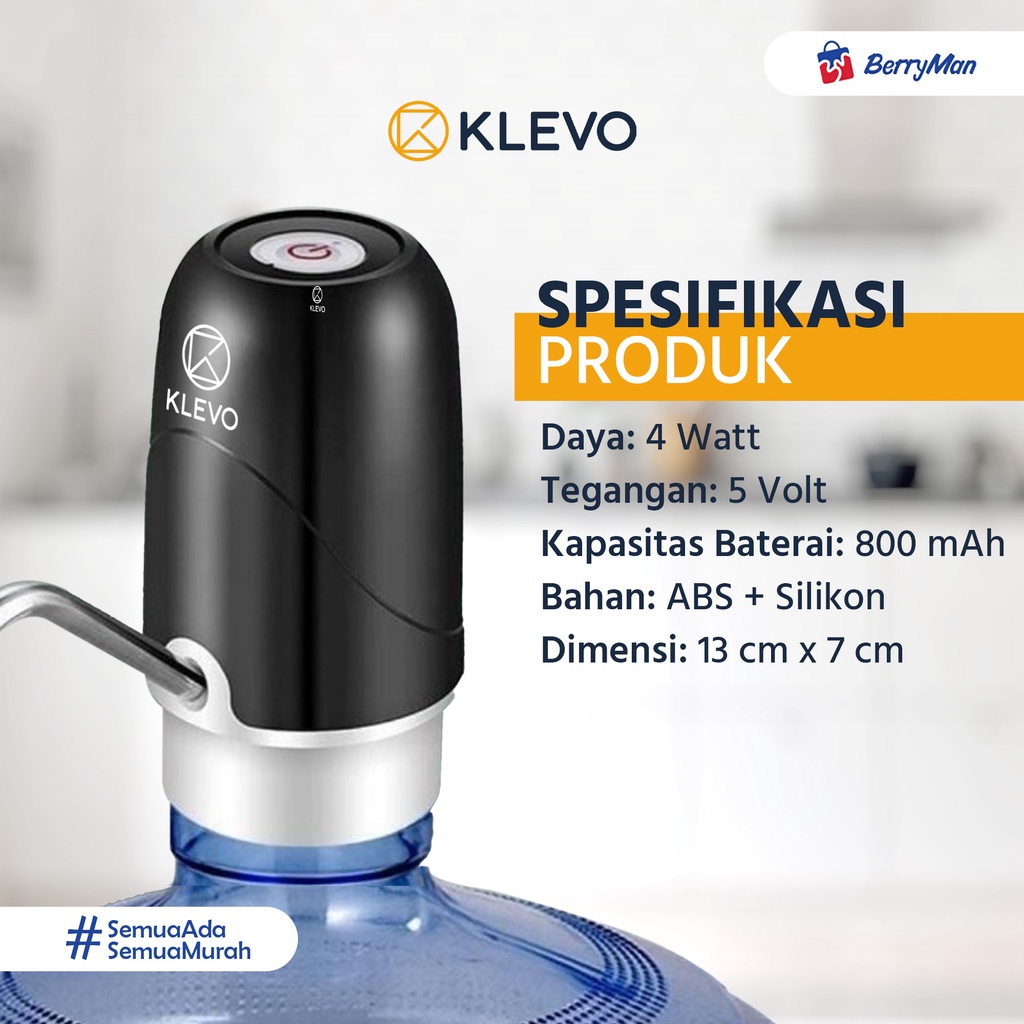 KLEVO POMPA AIR GALON ELEKTRIK NON LED USB Rechargeable - Automatic Water Dispenser
